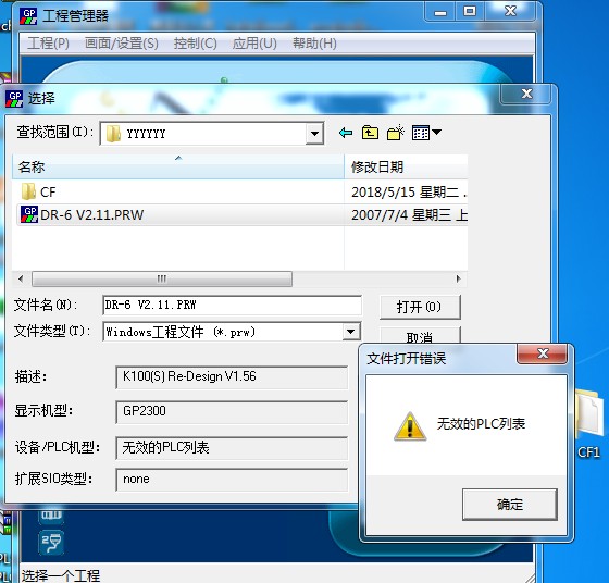 gp-pro/pb3 軟件讀寫GP2300觸摸屏。提示無效的PLC列表?梢詮暮玫挠|摸屏下載下來程序。是.PRW格式的程序。雙擊該文件,無法操作。文件后面括號(hào)里顯示無效的PLC列表。請(qǐng)哪位大神幫幫忙解決下吧。重謝!