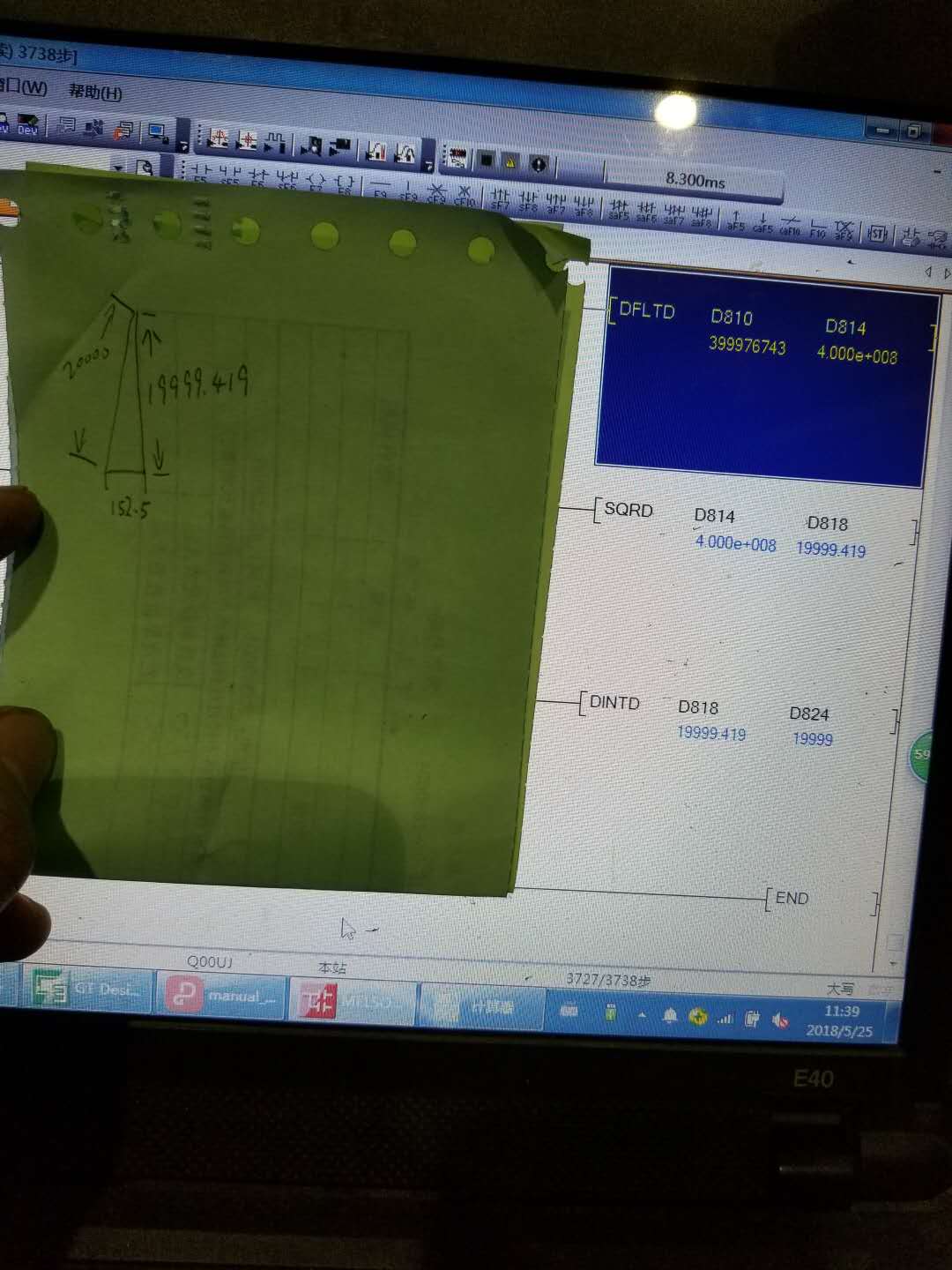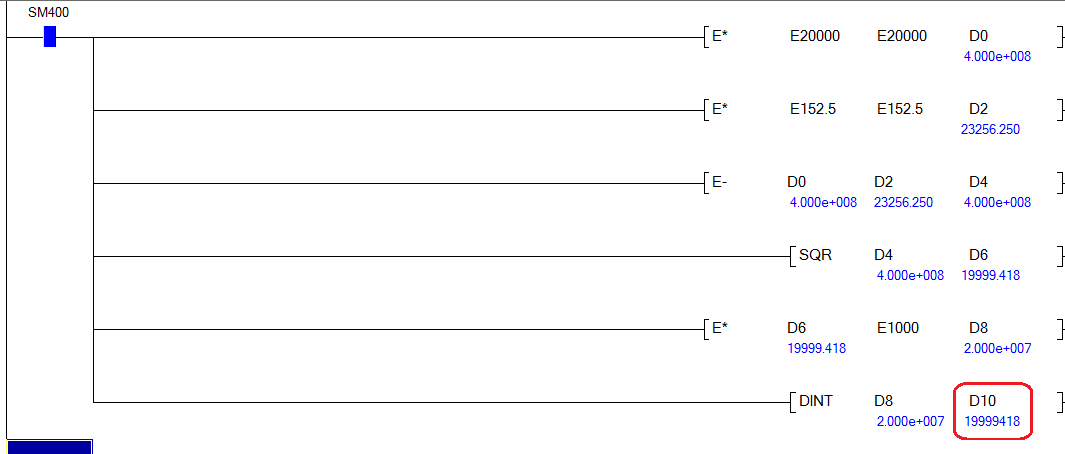 問題,在做開平方根的指令上面只有浮點(diǎn)數(shù)可開平方。浮點(diǎn)數(shù)轉(zhuǎn)換出來又舍小數(shù)了。