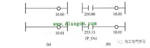 (a)不符合編程規(guī)格的梯形圖;(b)符合編程規(guī)格的梯形圖