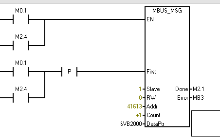 引用引用樓主莊五五五五五于2018-06-15 11:06發(fā)表的 在線等,挺急 :西門子modbus通訊控制丹佛斯fc51啟停,將047c或043c寫入地址為50000。用200的MODBUS協(xié)議庫來寫,但是MBUS_MSG塊的地址范圍為0~49999,50000已經(jīng)超出上限了!這還怎么搞?求高手解惑