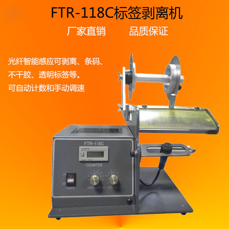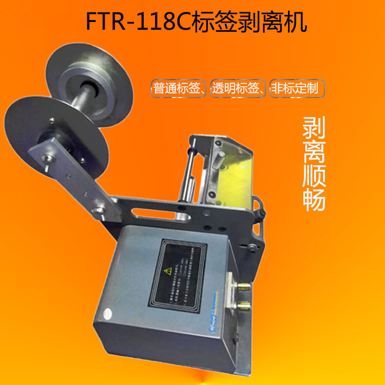 FTR-118C標(biāo)簽剝離機(jī)用于標(biāo)簽的自動剝離,剝離的標(biāo)簽被取用后,自動剝離下一張標(biāo)簽,提高工人取用標(biāo)簽效率,可一次性剝離多排標(biāo)簽。選配色帶打碼機(jī),可在標(biāo)簽上打印生產(chǎn)日期、批號等信息?蛇x配流水線噴碼機(jī),實(shí)現(xiàn)貼標(biāo)前和貼標(biāo)后在產(chǎn)品上噴印產(chǎn)品信息。