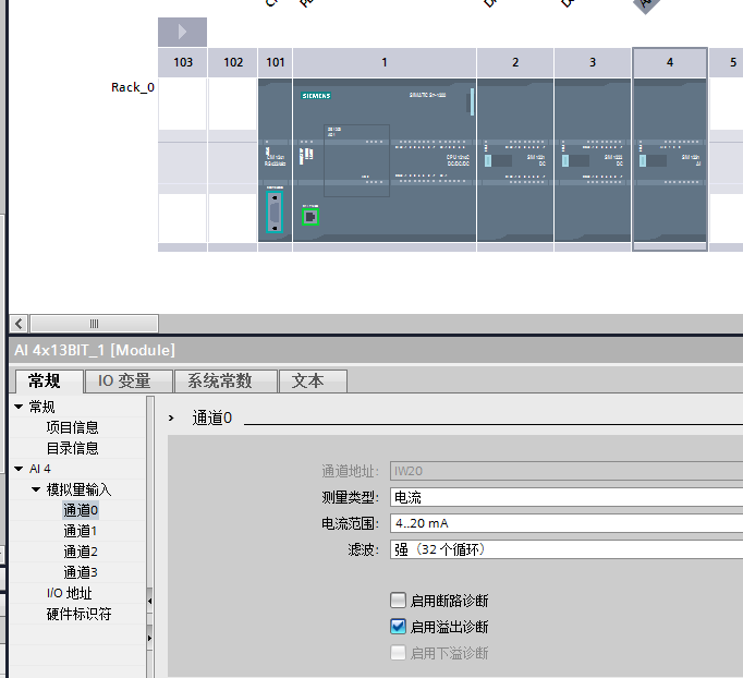 6eS7 231-4HD32-0AB0 模塊,通道0,配置為4-20mA電流輸入,顯示32767,超限,配置為0-20mA顯示值為13,萬用表測量電壓為2.3V(萬用表通過測量24V校驗應該是沒有問題的),模塊電流采樣電阻為250歐姆,那么這時電流為2300/250=9.2mA,數(shù)值應該是(9.2-4)/16*27648=8986。這個模塊是電工安裝的,我不在現(xiàn)場,是安裝的有問題,還是模塊硬件設置有問題呢?