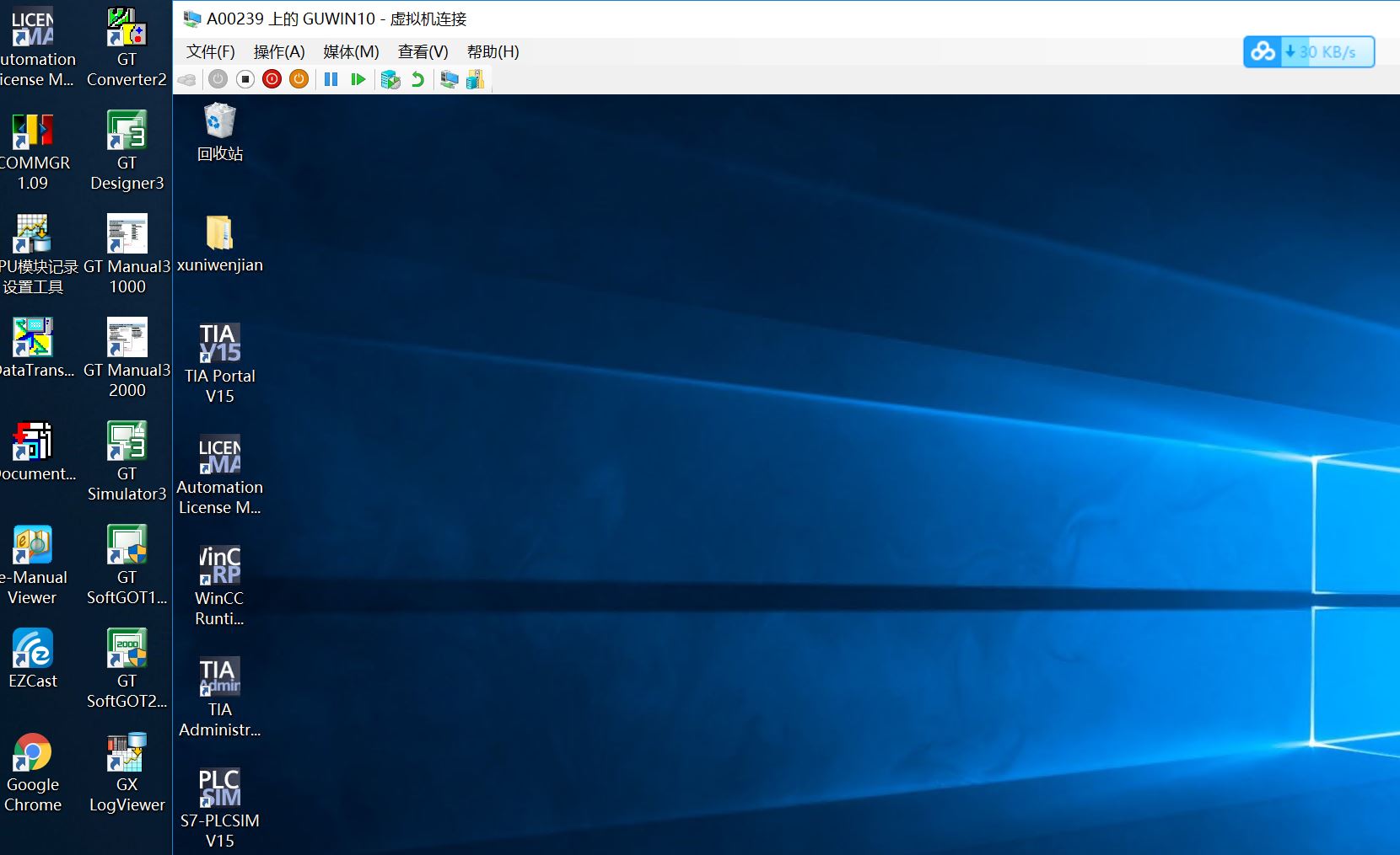 故事的開始是公司配的新電腦我裝好了V15。但裝好后發(fā)現(xiàn)無法打開對方發(fā)我來的V14壓縮文件中的人機程序,并出現(xiàn)提示版本不對。查了原因是對方使用的西門子人機某款型號V15竟然無(why???),沒法.只有卸載V15安裝V14SP1,(期間折騰半天.,差一點就準備系統(tǒng)重裝。省略.......).安裝好V14SP1能夠順利打開PLC和人機程序。過了幾天另外廠家設備到貨,一查發(fā)現(xiàn)竟然都是用V15版本,暈死。西門子V14、V15 STEP 7 XXX Professional軟件是可以共存在一個系統(tǒng),但WINCC Professional不可以。沒法決定安裝虛擬機。因為本人用的是WIN10系統(tǒng),找度娘指導發(fā)現(xiàn)竟然自帶虛擬機Hyper-v,折騰半天開啟了虛擬機。到網(wǎng)上下載WIN10安裝包(.iso),下了2個都無法引導成功。找到公司IT要了一個安裝包,引導成功安裝完畢。跳出WIN10熟悉的操作界面。試著準備將廠家提供的V15軟件安裝在虛擬WIN10系統(tǒng)里。咦?為何無法復制粘貼,也并無法拖拽導入?趕緊繼續(xù)百度,發(fā)現(xiàn)win10自帶的虛擬機不支持復制。只能用文件夾共享模式,折騰半天........成功安裝V15。解壓程序文件,可以操作,至此OK。
