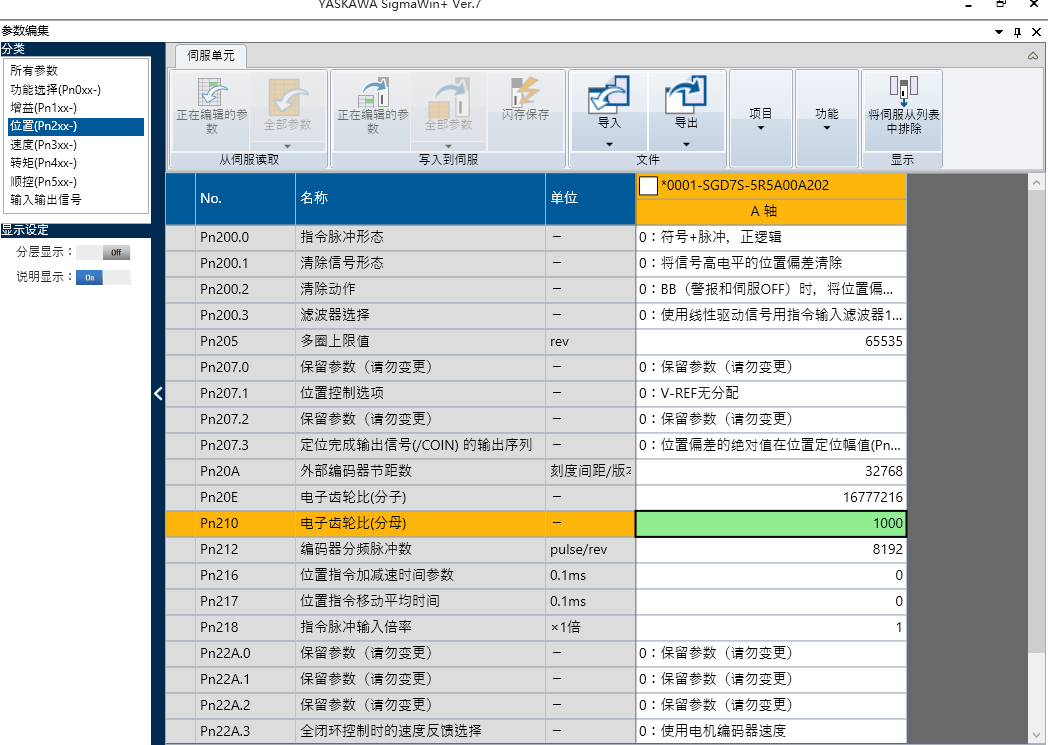求大佬指點,我的電子齒輪比是這樣設定的,應該沒有錯呀,為什么實際用PLC發(fā)脈沖走的很慢呢?(可以忽略不記那種,肉眼站遠了很難看到動作)求大神指點,安川伺服驅(qū)動一個垂直軸,傳動機構(gòu)是絲桿,編碼器分辨率是16777216,絲杠導程為5mm,設指令單位,一個脈沖等于1um,也就是0.001mm,那我轉(zhuǎn)一圈實際就是5/0.001=5000個脈沖。根據(jù)手冊上的公式,再配上有一個減速比5:1的減速機,也就是伺服電機轉(zhuǎn)5圈帶動負載軸轉(zhuǎn)1圈。求大神幫忙看看,為啥我PLC點動或者相對定位都走的特別慢呢?我用的是西門子S7-1200,組態(tài)軸上機械參數(shù)是,轉(zhuǎn)一圈5mm,發(fā)5000個脈沖。電子齒輪比的設定就是16777216/1000.