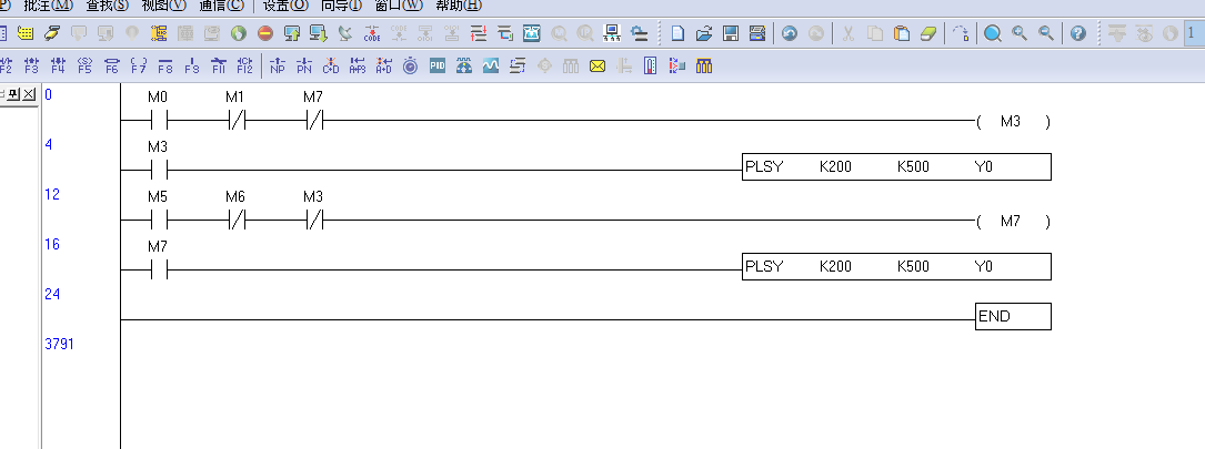 這型號(hào)PLC 又不能多次重復(fù)使用PLSY,  如果不> 只用=就會(huì)停不下來(lái)(但有時(shí)也能停), 一個(gè)方向一直走完6400個(gè)脈沖