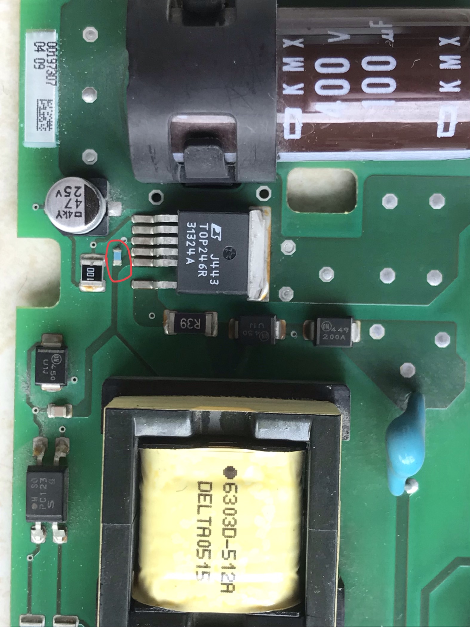 幫我看看S-224電源板 紅圈部分的是什么元件,什么型號的
