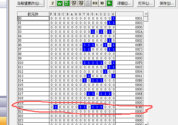 引用引用第1樓ymmfa于2018-06-21 12:45發(fā)表的 :我剛做了一個(gè)測(cè)試:[DEMOV E23 D0] 監(jiān)視D0,16進(jìn)制時(shí)是41B8,和你的一樣。然后我用指令[DINT D0 D10],這時(shí)D10就轉(zhuǎn)成整數(shù)了,10進(jìn)制是23,16進(jìn)制是17。