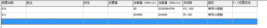 使用此命令以浮點(diǎn)格式顯示數(shù)據(jù)。小端法。使用2個寄存器。