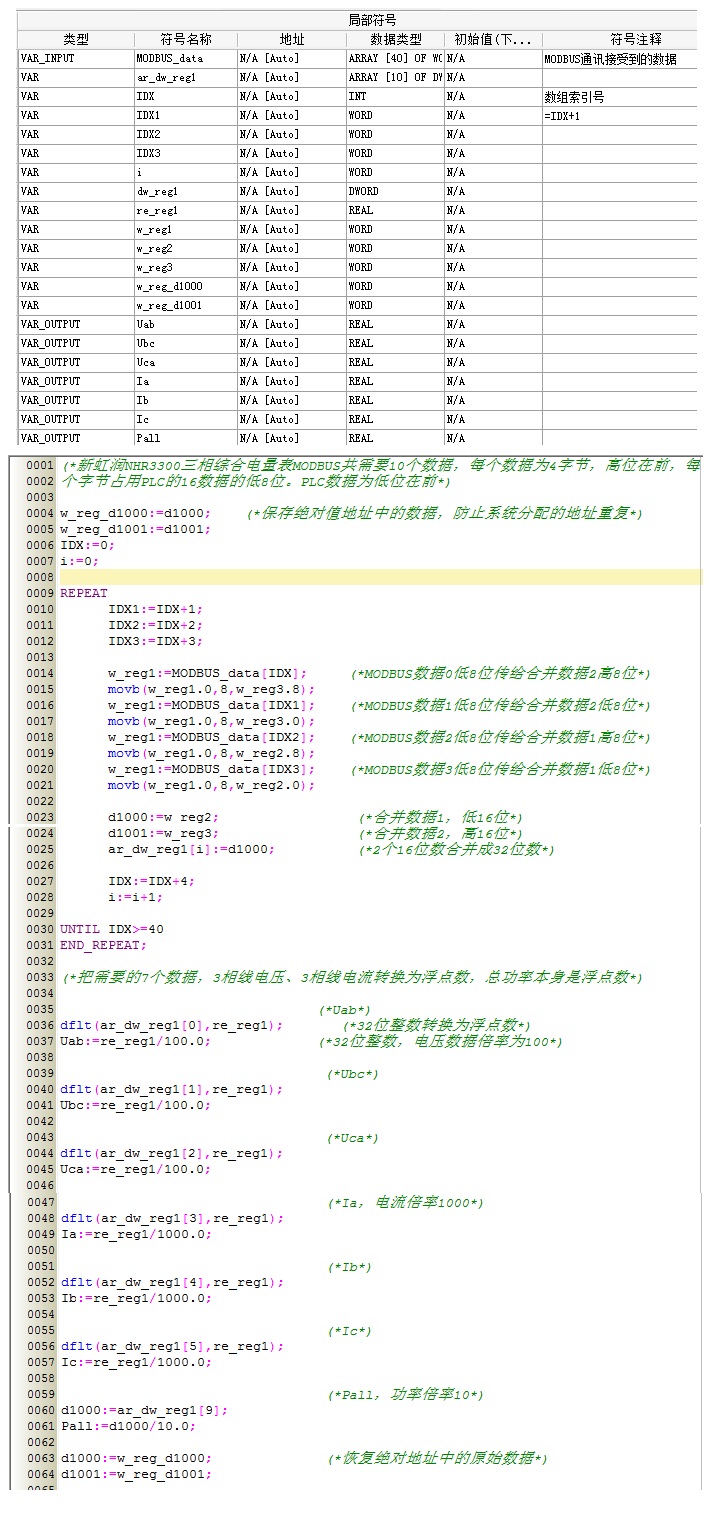 我這個例子你參考下:編程軟件對變量定義為字節(jié)、字、浮點(diǎn)后就不允許混用操縱了,我使用了絕對地址來實(shí)現(xiàn)混用操縱。程序有漏洞,如果執(zhí)行這段程序時有中斷程序,且在中斷程序里對這個絕對地址進(jìn)行了更改就會出錯,所以需要避免中斷對絕對地址的數(shù)據(jù)更改。