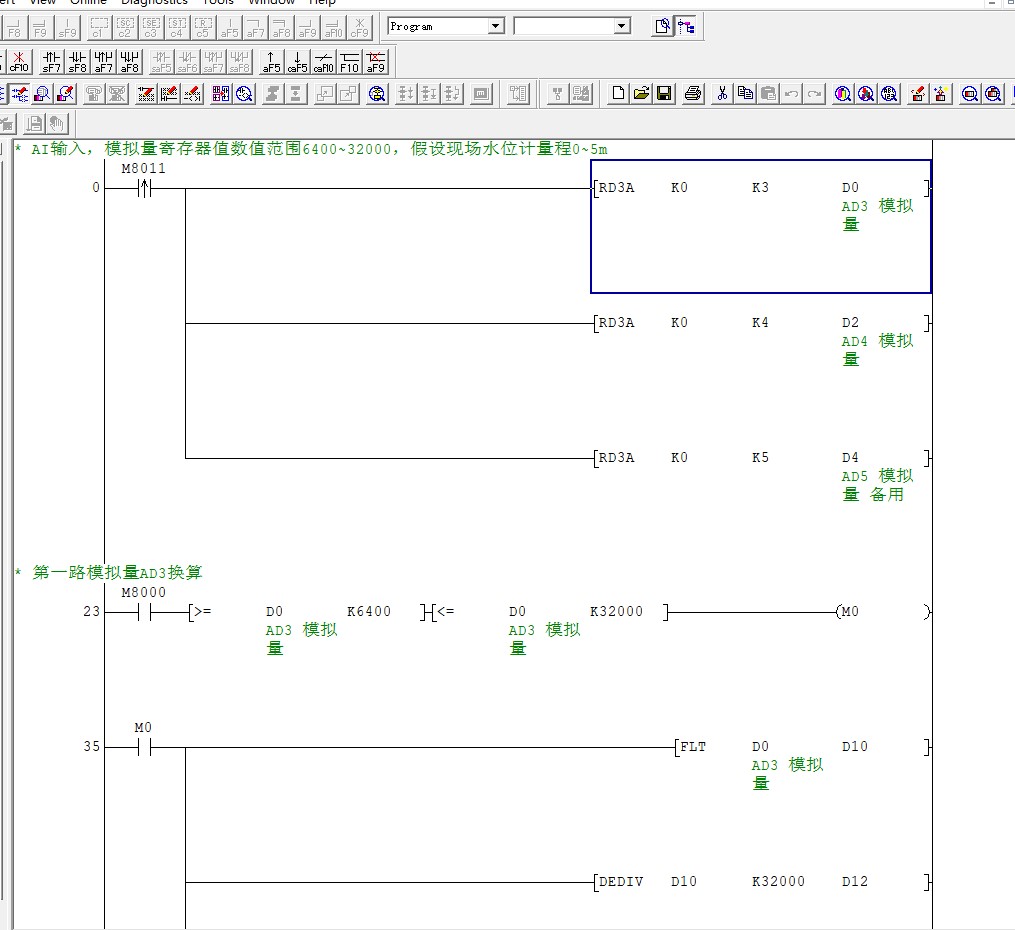 引用引用樓主wjwjwjwj于2020-03-14 21:24發(fā)表的 請問有沒有用過國產(chǎn) PLC 工控板FX3U-24MT MR 多路模擬量的? :初次編模擬量輸入量讀取,讀不出數(shù)據(jù) [attachment=241653]