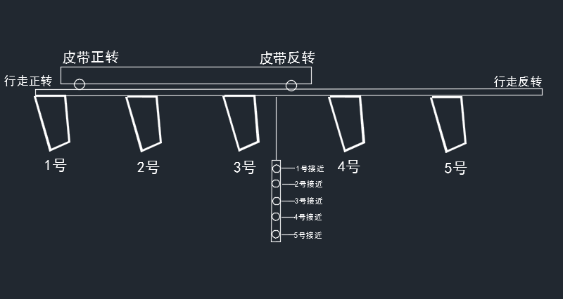 引用引用第1樓gk1234于2020-05-02 19:04發(fā)表的 :2個控制,4個動作,1,小車行走正轉(zhuǎn)和反轉(zhuǎn),小車當前位置,目標位置決定正轉(zhuǎn)還是反轉(zhuǎn),2,小車皮帶正轉(zhuǎn)和反轉(zhuǎn),不同料口決定正轉(zhuǎn)還是反轉(zhuǎn)。