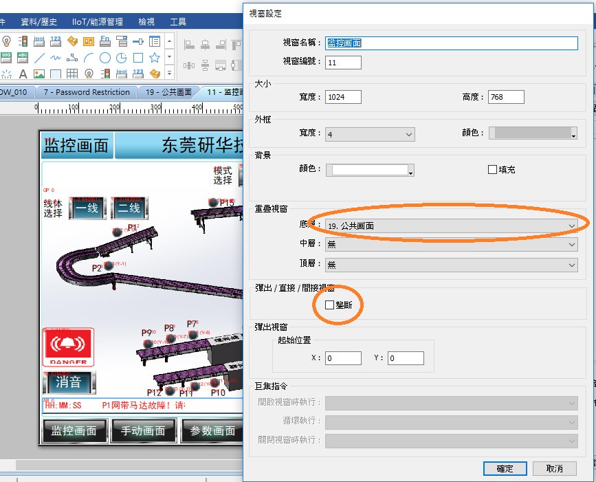 附件是一個(gè)威綸屏MT8021IE的一個(gè)觸摸屏程序。他用到了權(quán)限等級(jí)操作問(wèn)題。原程序,只有 參數(shù)畫面 按鈕設(shè)置權(quán)限B(其他畫面按鈕無(wú)權(quán)限設(shè)置,都可以打開(kāi))。當(dāng)按 參數(shù)畫面 時(shí),這時(shí)會(huì)跳出 7號(hào)畫面,提示輸入密碼。我以為他是用的直接窗口或者間接窗口功能,但是沒(méi)找到,也不知道人家是怎么設(shè)置出來(lái)的。然后我把 監(jiān)控畫面 安全等級(jí)也設(shè)置成B,(在19號(hào)公共畫面設(shè)置)結(jié)果那個(gè) 7號(hào)畫面提示輸入密碼窗口 也不會(huì)彈出,這是怎么回事呢?