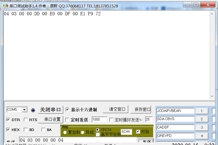 我用串口調(diào)試助手發(fā)送 讀取MODBUS溫控器溫度