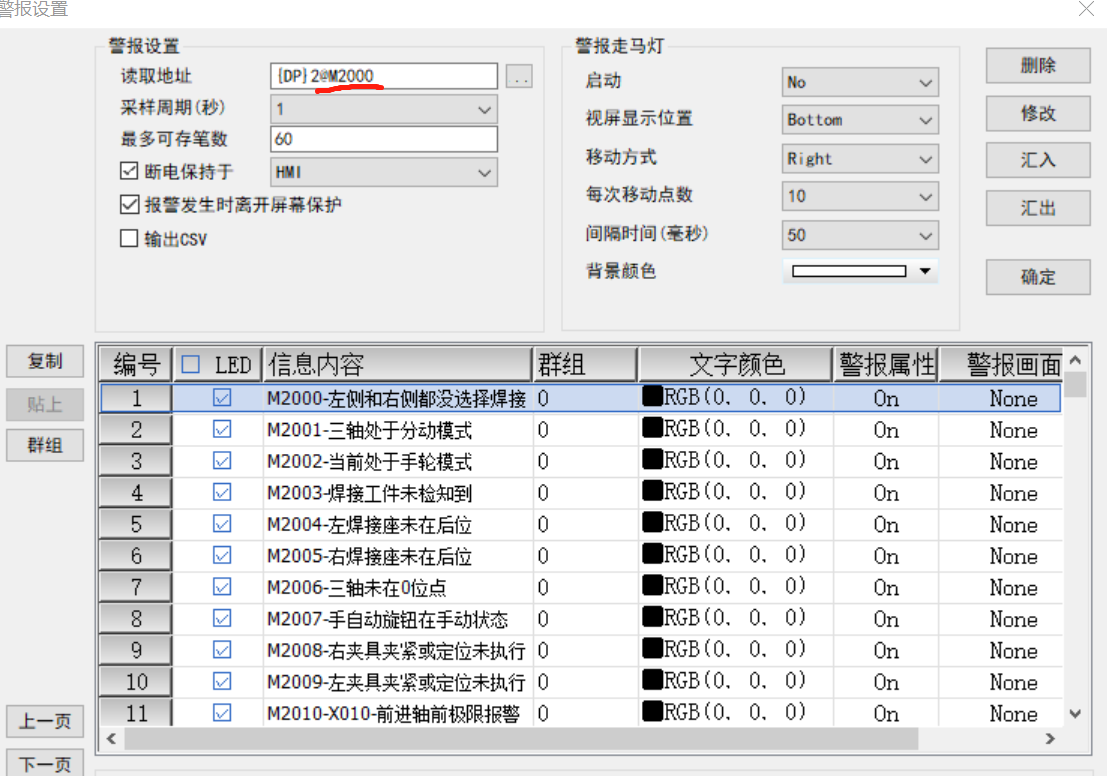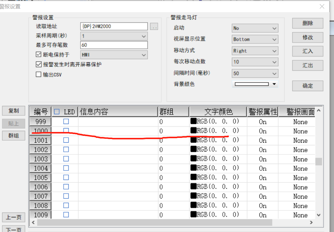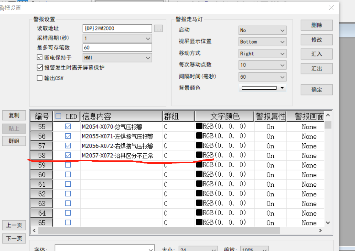 把后面不用的位文字改成跟背景色一樣的顏色,報警信息文字顏色區(qū)分開來,即使觸發(fā)了也不會看到什么,要么這個區(qū)間的位就不要用了