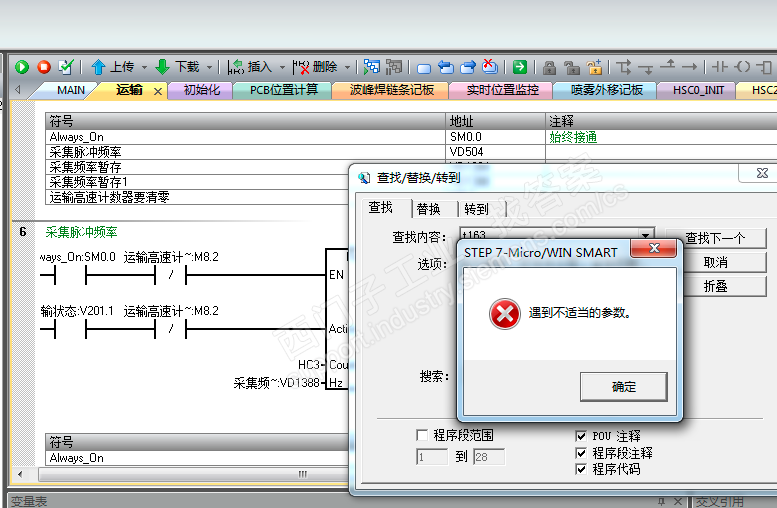 西門(mén)子SMART 用查找功能的時(shí)候提示{遇到不適當(dāng)參數(shù)}  有辦法解決嗎     為什么會(huì)出現(xiàn)這樣的情況  ? 出現(xiàn)了以后沒(méi)有辦法解決嗎