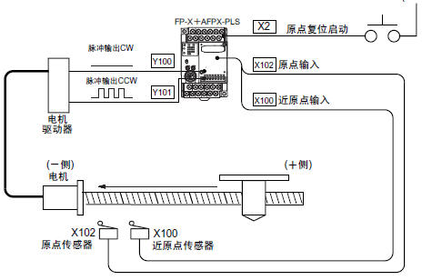 你沒有設(shè)置X4為原點,方法:選項\PLC系統(tǒng)寄存器設(shè)置\主單元輸入設(shè)置2,將X4設(shè)為脈沖輸出CH0的原點輸入,就OK了。 |