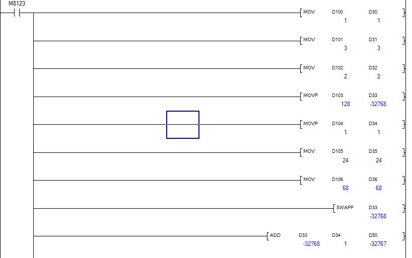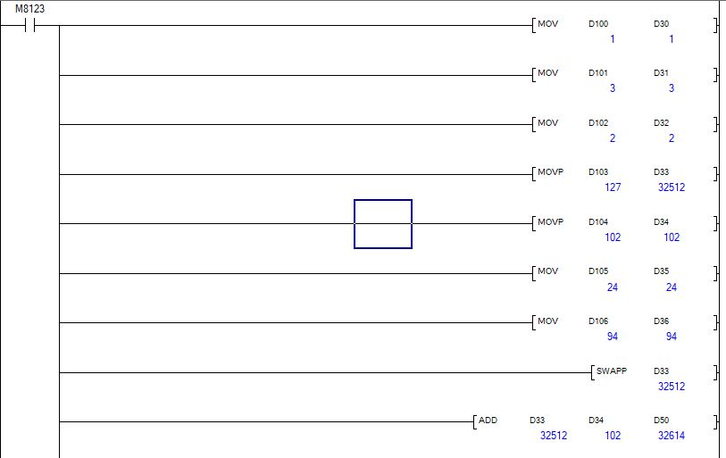 當(dāng)接收存儲器高位D103值小于等于K127時正常。