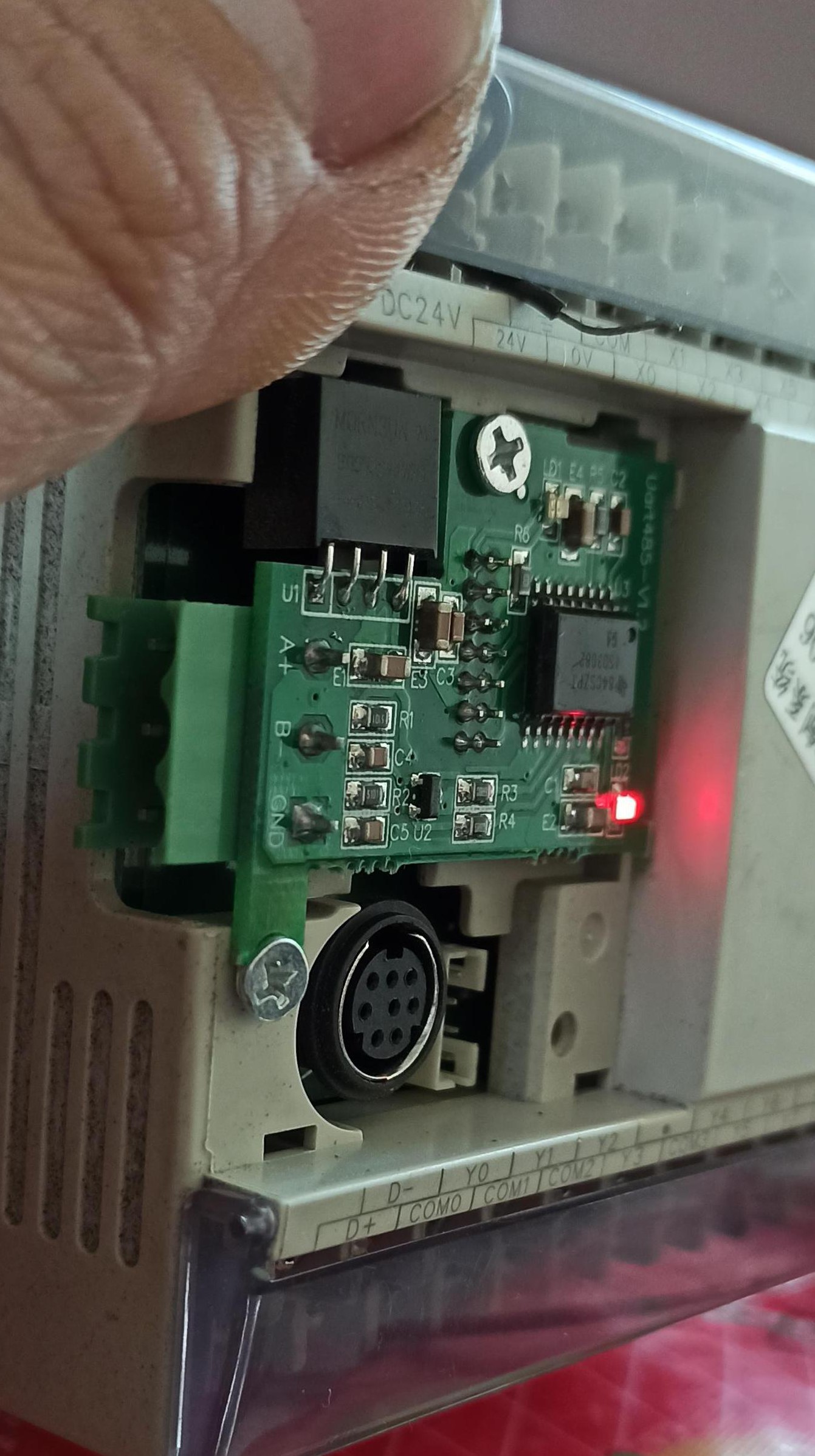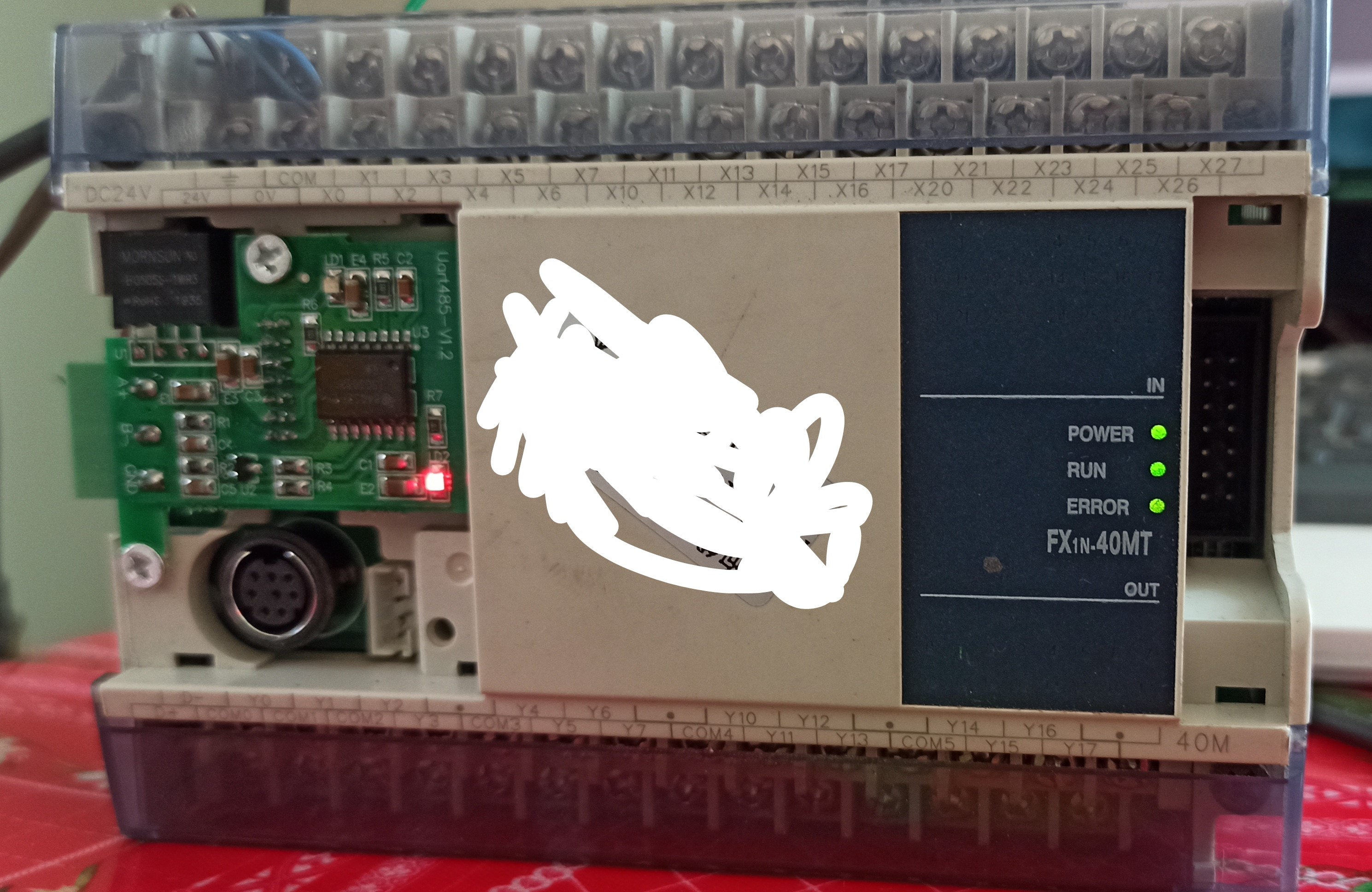 上面加了一塊好像是485的通訊板,也可以用485試試.編程軟件用三菱的應(yīng)該沒錯.先用三菱的老軟件試試,SWOPC-FXGP/WIN-C,GX Developer、GX WORKS2
