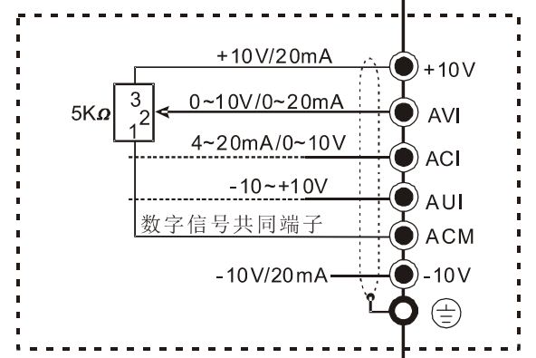 電位器是不是接錯(cuò)了?電位器電阻多大?單獨(dú)焊接一個(gè)5k電位器放到變頻器端子旁測(cè)試一下。