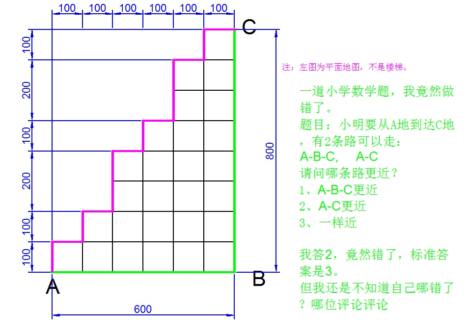 引用引用第2樓apei2014于2020-06-24 08:16發(fā)表的 :很明顯,把AC之間的橫向線段平移,得到線段AB;縱向線段平移,得到線段BC,當(dāng)然是一樣長的路徑。
