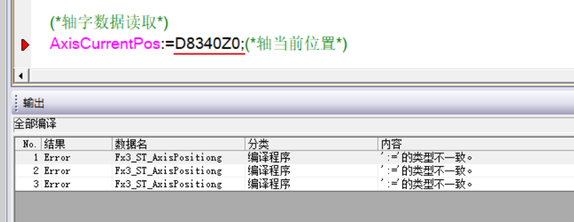 引用引用第3樓木林森于2021-07-09 22:00發(fā)表的 :Works2的ST語言不支持定義D寄存器類型,類型不對不能代入,你這個只能用指令DMOV傳送類,不能用 := 代入數(shù)值。
