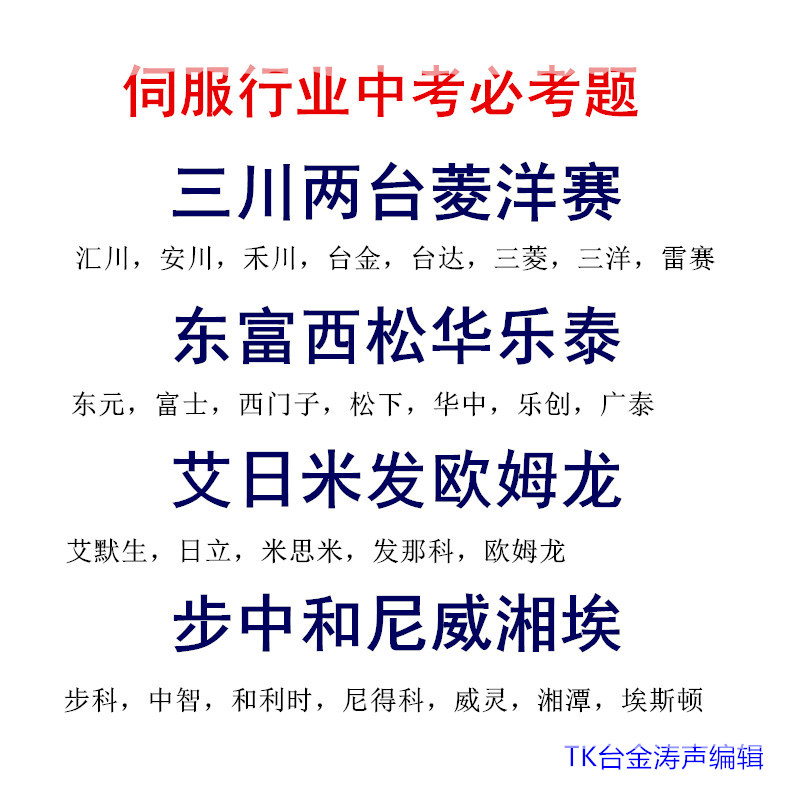 三川兩臺(tái)菱洋賽——(匯川、安川、禾川)(臺(tái)達(dá)、臺(tái)金)三菱、三洋、雷賽