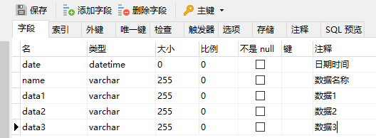 本案例中FX3G的PLC編程口就是被觸摸屏占用了,通過IGT-SER智能網(wǎng)關(guān)模塊按照上圖實(shí)現(xiàn)與PLC和觸摸屏同時(shí)通訊,將PLC寄存器的數(shù)據(jù)分兩個(gè)組,按不同的周期分別上報(bào)到SQLServer數(shù)據(jù)庫。首先通過數(shù)據(jù)庫工具軟件Navicat連接數(shù)據(jù)庫,建立好數(shù)據(jù)表tb_fx_01,如下圖: