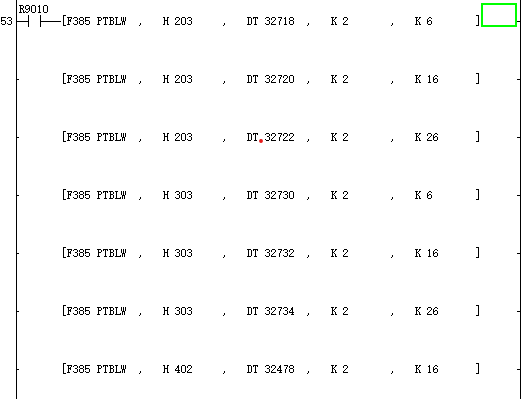 F385寫位置控制參數(shù),H203這2#軸參數(shù)3 ,K6,1#位置脈沖數(shù)據(jù),k16,2#位置脈沖數(shù),