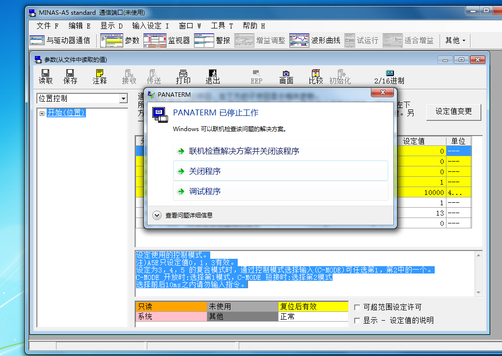 引用引用樓主威威貓時光機(jī)于2021-11-26 16:44發(fā)表的 松下伺服調(diào)試軟件 :松下伺服調(diào)試軟件,我想把參數(shù)保存到電腦,點擊保存然后就這樣了。有誰知道什么原因???就我這電腦會這樣。我連接上伺服也一樣的效果。