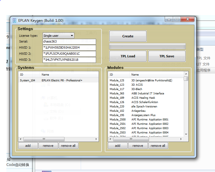 左邊的SYSTEMS不添加(留白),單擊“TPL Load”按鈕,然後再單擊“Create"按鈕,即可