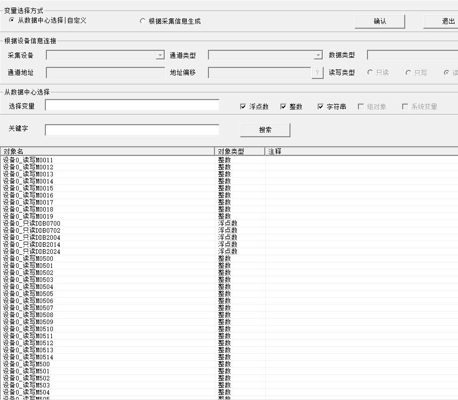 剛接觸昆侖通態(tài)屏,在設(shè)備窗口新建變量M500-M514,在用戶窗口選擇變量時,發(fā)現(xiàn)變量重復(fù)出現(xiàn),而且變量類型都變成了整數(shù)。怎么回事呢