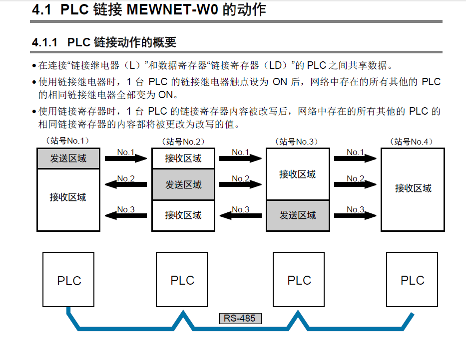 當多個PLC,官方手冊圖示,采用RS485,互相通訊數(shù)據(jù)交互