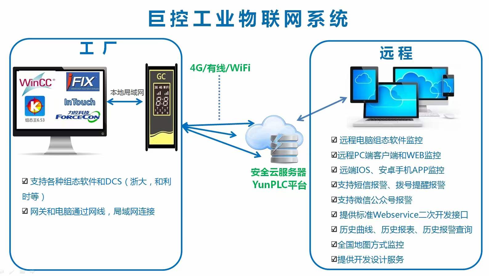 巨控GRMOPC模塊主要從上位機(jī)(scada、dcs)讀取數(shù)據(jù)上云,短信電話報(bào)警。