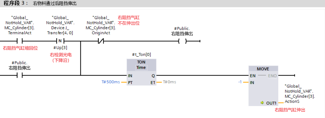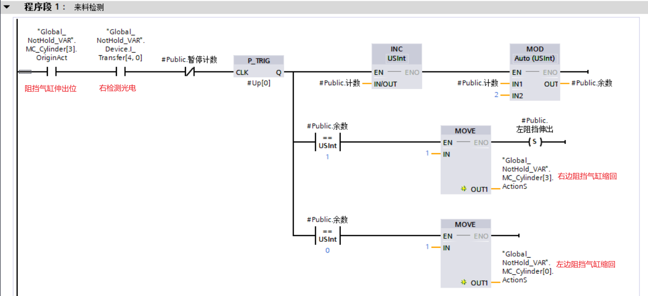 但現(xiàn)在執(zhí)行時還是有些問題,比如當(dāng)來料的間隔比較小時,右邊放行的“已加工”物料還沒有通過左邊機構(gòu),就會觸發(fā)左邊重復(fù)加工的問題。