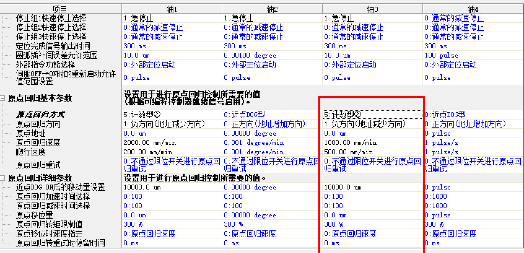 大神指點(diǎn)一下,三菱QD75M4定位,原點(diǎn)回歸到了DOG和極限都不停,,但是點(diǎn)動(dòng)可以用限位停止。不知道是那設(shè)置不對(duì)呢?軸3