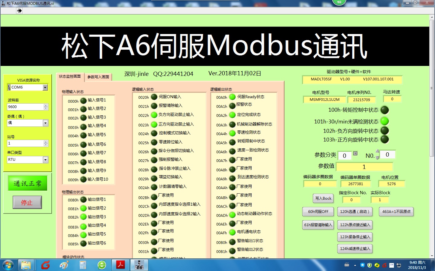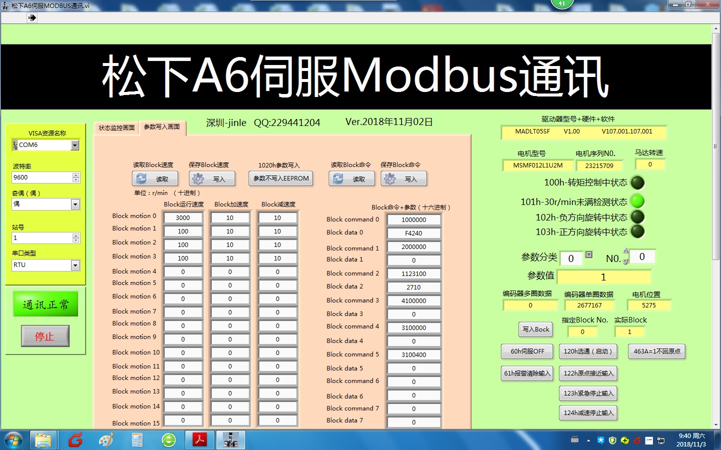 松下A6伺服MODBUS通訊例子剛好一周年了,上一個(gè)貼只是通過(guò)Modbus讀取驅(qū)動(dòng)器的參數(shù)、狀態(tài)。