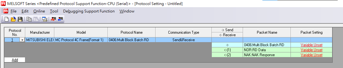 請(qǐng)問(wèn)FX5U想透過(guò)predefined protocol設(shè)定MC協(xié)議報(bào)文與FX2N通信如何設(shè)置呢