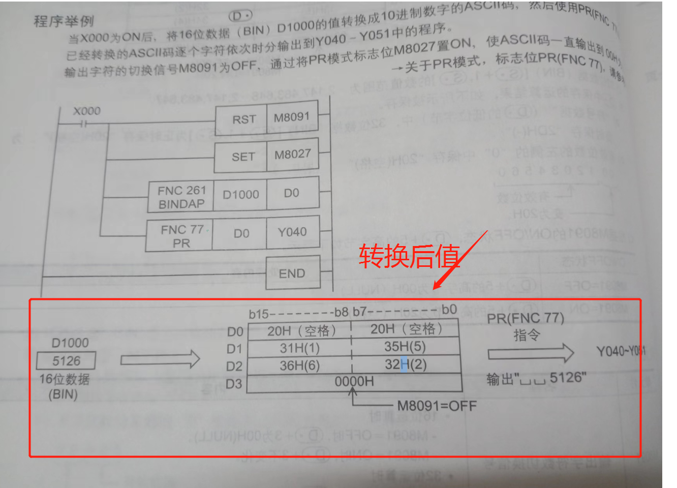 BIN轉(zhuǎn)換ASCLL碼(BINDAP)按照手冊(cè)寫(xiě)好程序,D1000輸入5216值,轉(zhuǎn)換的ASCLL碼與手冊(cè)不一樣(手冊(cè)轉(zhuǎn)換后是否 31H  35H5   36H6  32 H2 如圖),怎么會(huì)事,請(qǐng)大家指導(dǎo)一下謝謝