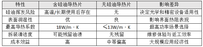 → 是:推薦無硅油導熱片(硅油長期揮發(fā)風險低)