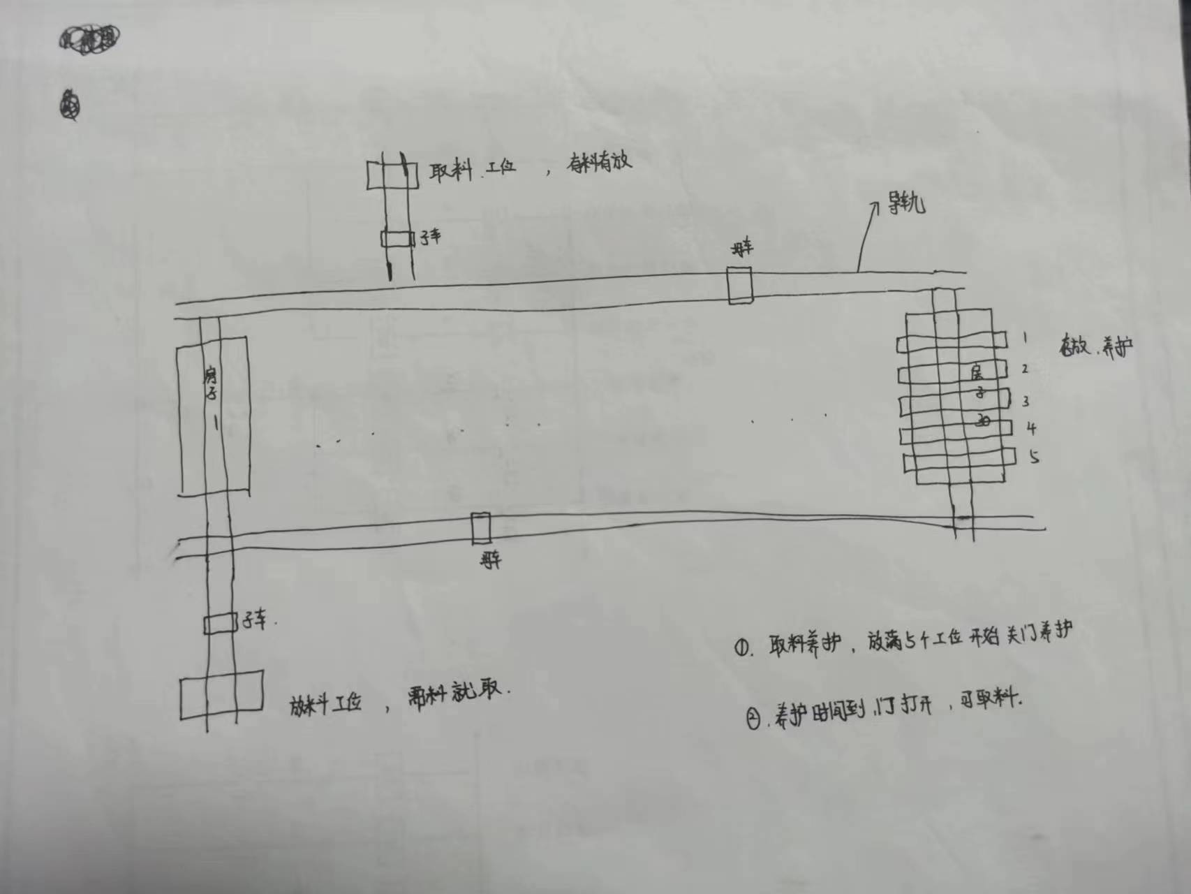 大概明白了,縱向2母車一收一放料,每條橫向軌道1或者2輛小車負責運料,互不干擾,我只能想到火車調(diào)度那樣每個工位預留時間,超時就跳過,通訊輪訓那樣