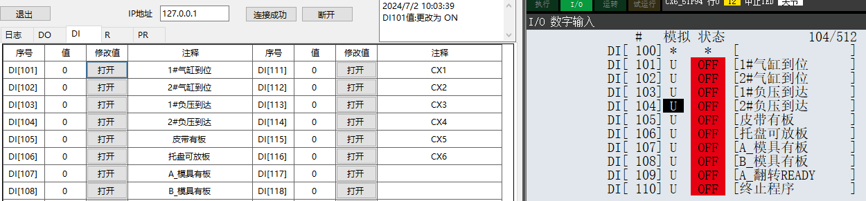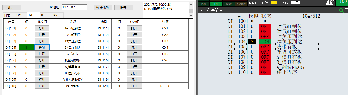 但是寫(xiě)DI時(shí),必須在示教器上將模擬功能打開(kāi)才有效。