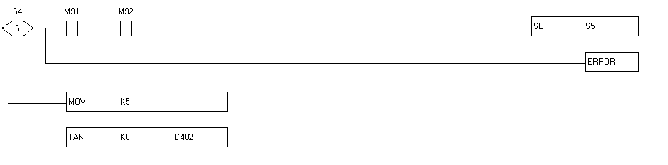 3、上載程序后發(fā)現(xiàn)梯形圖程序最后一行顯示“ERROR”,部分mov指令只有一個(gè)操作數(shù),還出現(xiàn)一條TAN K6 D402指令,程序中I/O點(diǎn)位也不全。