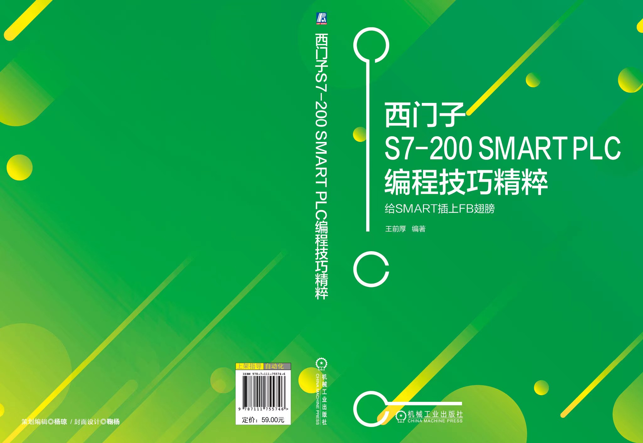 上個(gè)月,我的一本新書《西門子S7-200 SMART PLC編程技巧精粹》剛剛由機(jī)械工業(yè)出版社出版發(fā)行。我都不好意思稱之為專著,因?yàn)檫@并不是SMART PLC的全功能手冊(cè),而只是技能集錦,我以在SMART中實(shí)現(xiàn)FB功能目的為主線,集合所有需要的技能, 整理成了一本小冊(cè)子。所以給書起的付名:給SMART 插上FB翅膀。
