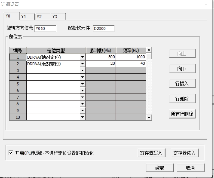 如圖所示,內(nèi)置定位參數(shù)下方有個     ▢開啟CPU電源時不進(jìn)行定位設(shè)置初始化                后面有兩個按鈕     寄存器寫入    寄存器讀取