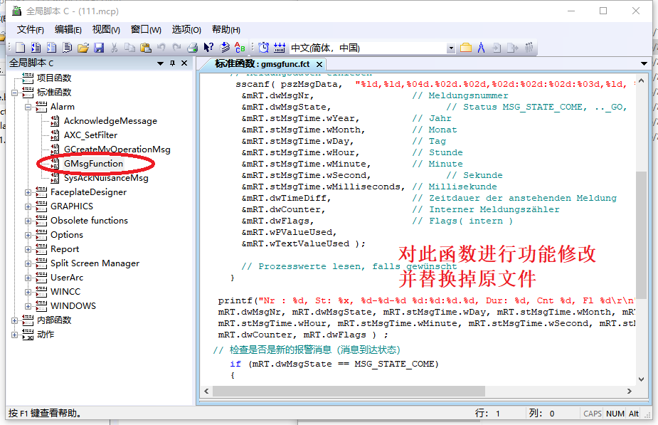 第三步,把gmsgfunc.fct腳本放到C:\Program Files (x86)\SIEMENS\WinCC\aplib\Alarm中替換掉以前的。