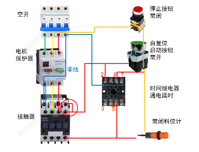 時(shí)間繼電器接的常閉,延時(shí)斷開(kāi);目的是一段時(shí)間內(nèi)屏蔽傳感器,啟動(dòng)一段時(shí)間