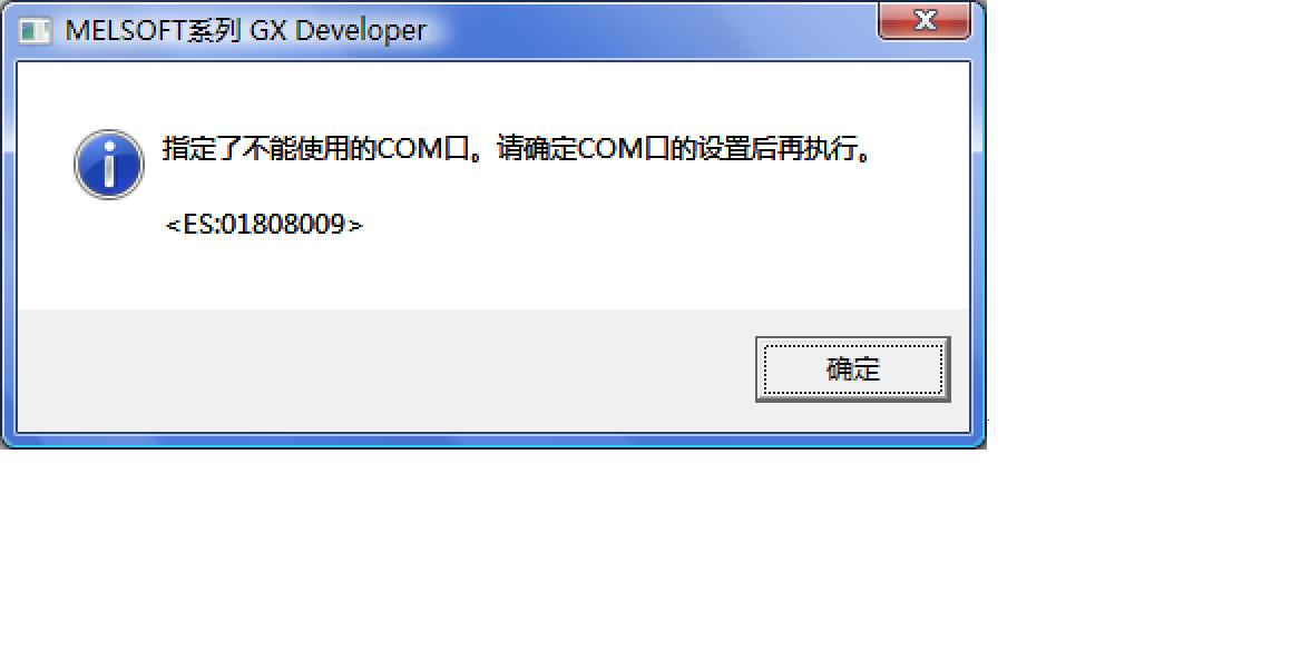 當(dāng) 在線→PLC讀取  時(shí)提示:“指定了不能使用的COM口.請(qǐng)確定COM口的設(shè)置后再執(zhí)行.  <ES:01808009>  ”。