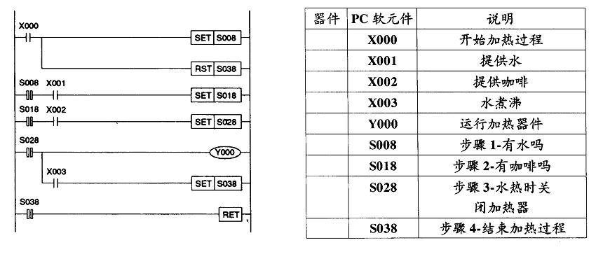 Y0是運(yùn)行加熱裝置的,X1是檢測(cè)容器內(nèi)有沒(méi)有水的,X2是檢測(cè)容器內(nèi)有沒(méi)有咖啡的,(加水加咖啡是人工進(jìn)行的)如果有水有咖啡,X1,X2才有信號(hào),Y0就有輸出。所以只需Y0輸出就可以了。