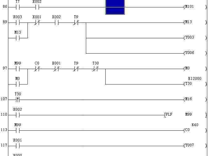 引用引用第0樓學(xué)習(xí)中于2007-09-18 20:35發(fā)表的 新人求助~~雙線圈問題(自動(dòng)可以,手動(dòng)是點(diǎn)動(dòng)-- M13線圈 :程序自己編了下,現(xiàn)在遇到問題,雙線圈問題(自動(dòng)可以,手動(dòng)是點(diǎn)動(dòng) y3只有點(diǎn)動(dòng)out y3和y6 即 out m13 ,各位高手有改進(jìn)的地方請指導(dǎo)~謝謝 停止按扭 x1 指示燈-y7 .......