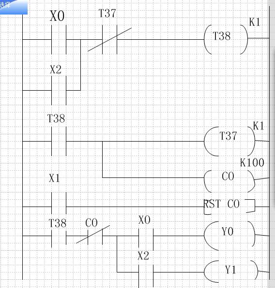 2、我分析圖中是0.1秒閃亮啊,假設(shè)閉合X0,T38通電,延時(shí)0.1秒后燈亮,T37通電延時(shí)開(kāi)始,0.1秒后T37動(dòng)斷觸點(diǎn)斷開(kāi),T38斷電,燈滅,隨即,t38又通電循環(huán)